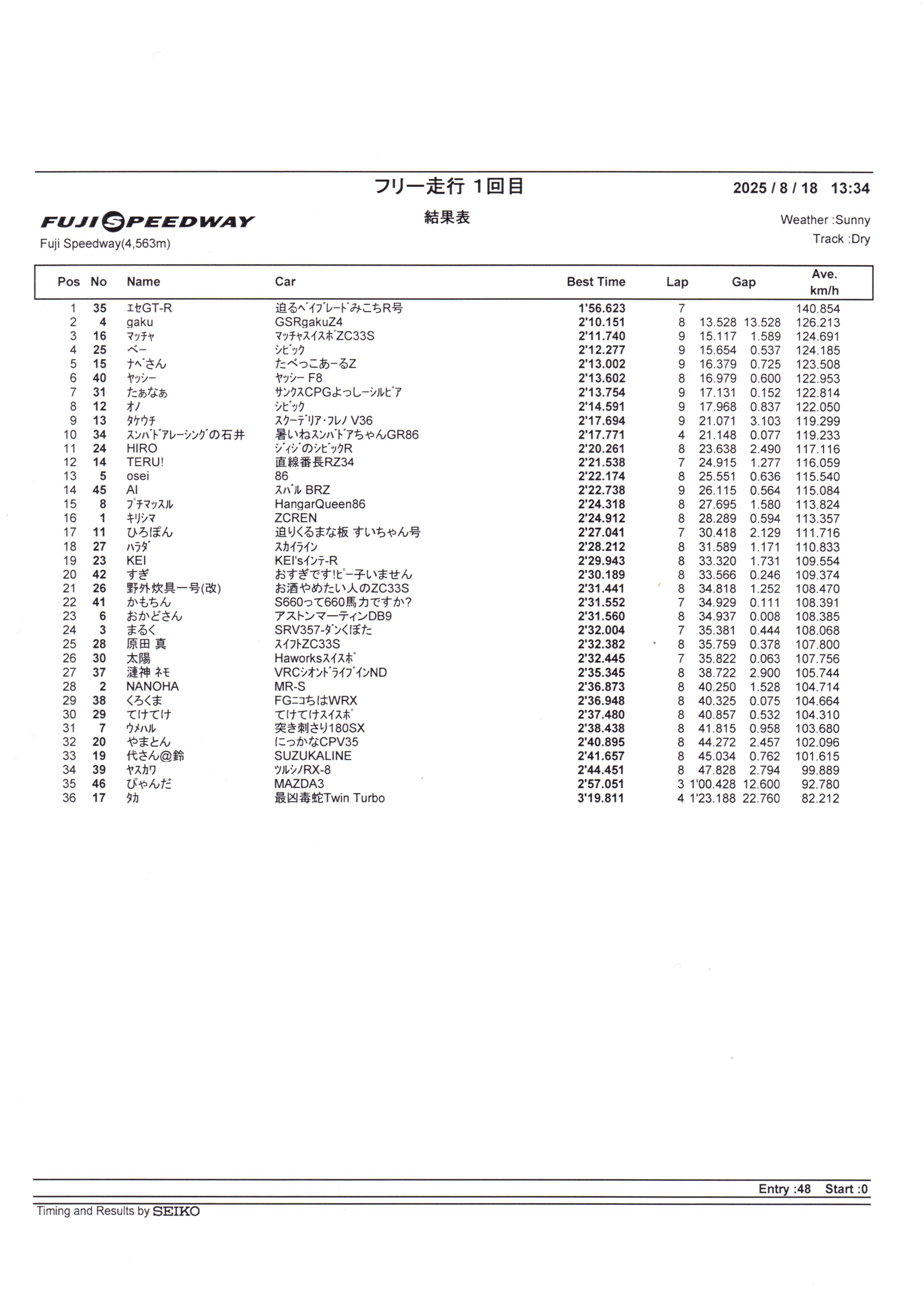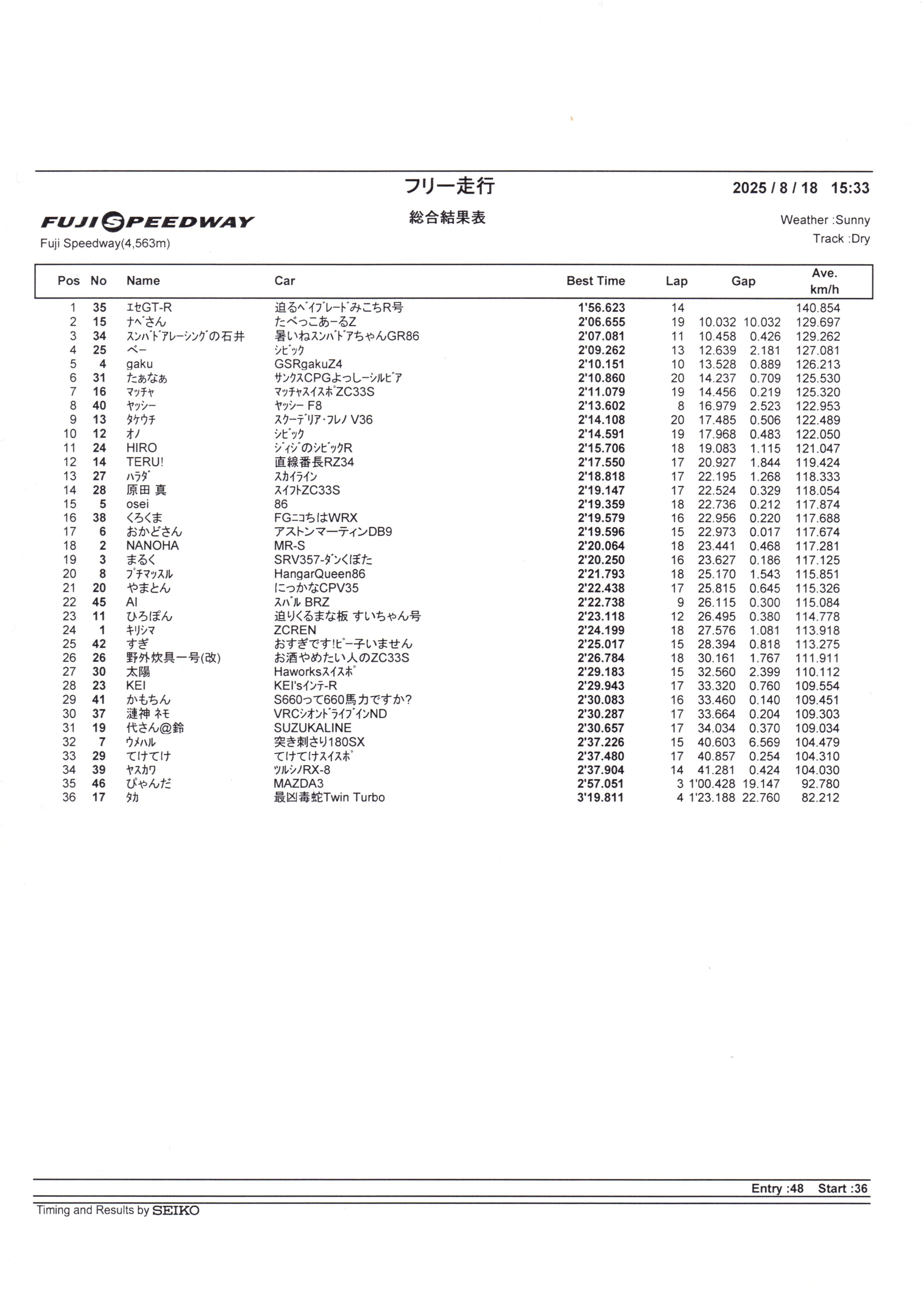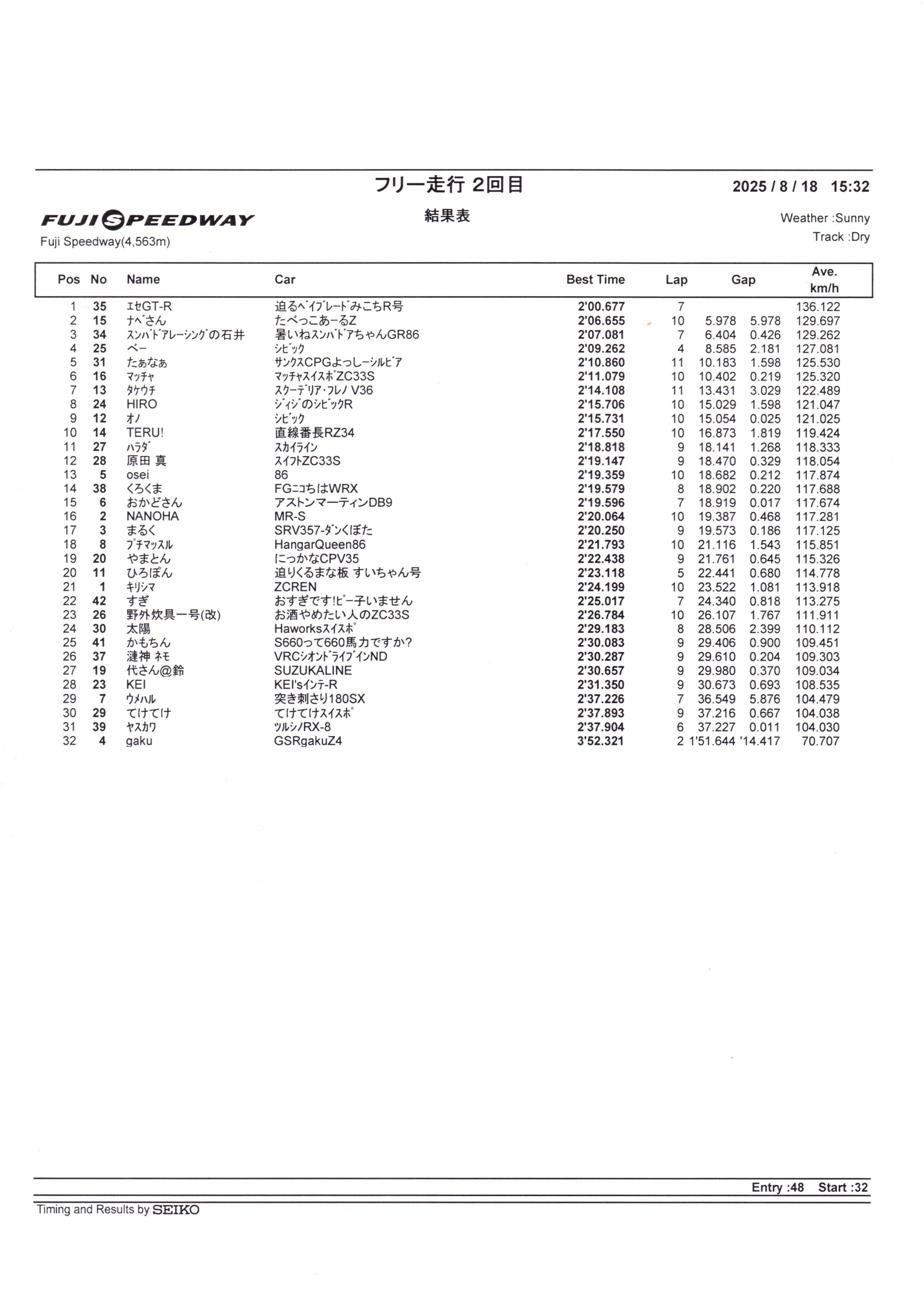 個別リザルトを受け取っていない方は、メールでお問い合わせください。